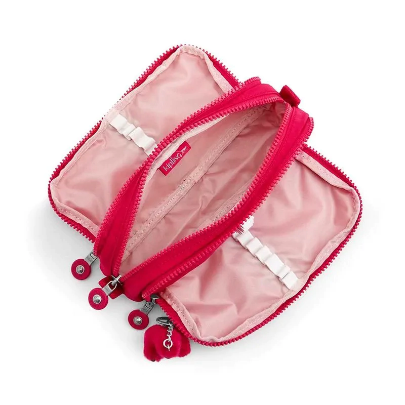 O Gitroy é outro clássico da Kipling. Ele é super espaçoso, e contém três compartimentos. Nos compartimentos frontal e traseiro, ele possui 24 elásticos para acomodar seus lápis e canetas com bastante segurança. Em seu compartimento central, ele dispõe de bastante espaço para borrachas, apontadores, colas, tesouras e qualquer outro material que você precise guardar.